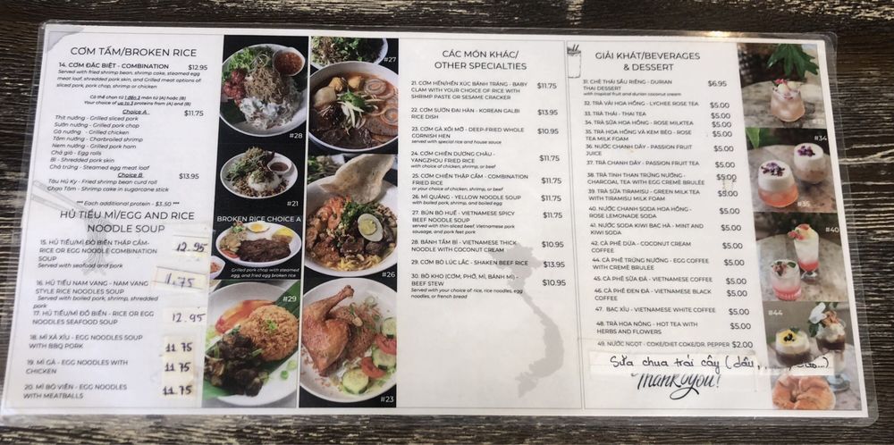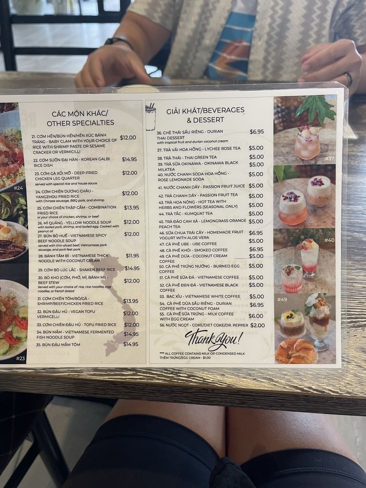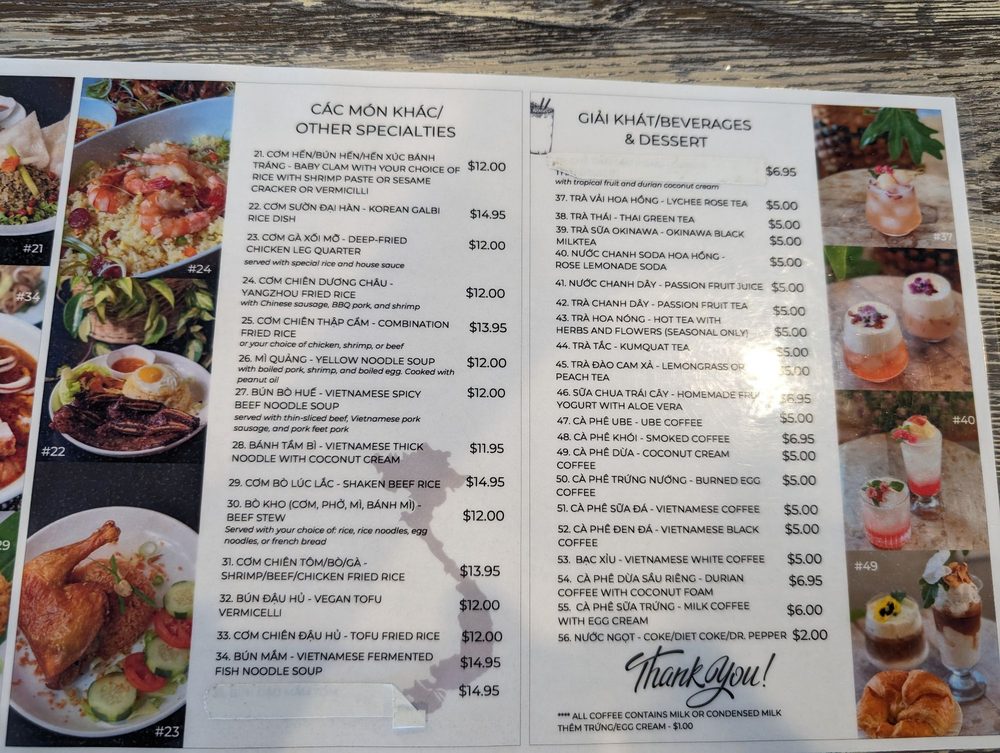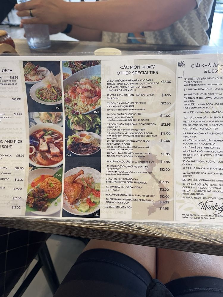 Introducing the menu at Bep Nha - Viet Kitchen, a Vietnamese noodle and soup haven in Dallas, TX. This casual spot offers a range of delectable dishes like Mi Quang, BBH, Pho Ga, and Bun Chay. Known for its prompt service, the restaurant is Asian-owned and provides a variety of amenities from outdoor seating to Wi-Fi. Customers rave about the flavorful dishes, especially the Bo Luc Lac and their signature egg coffee. The menu features a mix of traditional Vietnamese fare alongside unique drinks like Okinawa milk tea. With attentive service and affordable prices, Bep Nha - Viet Kitchen stands out for its delicious offerings and cozy ambiance. Don't miss the complimentary desserts and happy hour specials that add an extra touch to your dining experience.